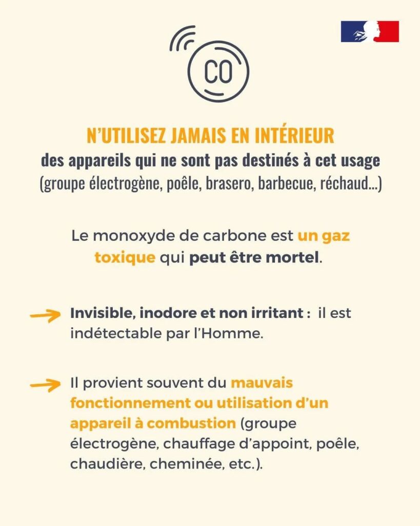 Suite à la Tempête Nils, des coupures électriques peuvent conduire à utiliser des appareils à combustion (groupe électrogène, poêle, brasero, barbecue, réchaud…).